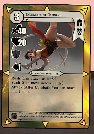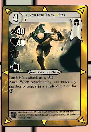 Enhanced movement cards: Cards which move themselves or allies. These creatures also have Rush, which is a generally useful ability that will allow creatures to be individually powerful, while still retaining the advanced interactions.