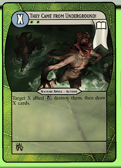 How Mad Science expresses elemental themes and mechanics: Nature is an element which wins by accumulating more and more resources. In this case, flooding the field with many tokens, and winning not through power or finesse, but sheer numbers.