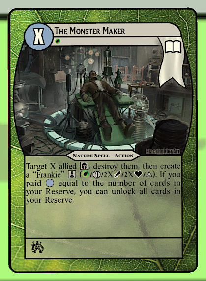 Mad Science! X-cost Finisher Spells: The final piece to the mad science set was the spells. These spells have a variable cost, and play off the number of tokens on the field, utilizing them in different ways. Because of the variable cost, they can be useful if you have many tokens on the field, or only a few.